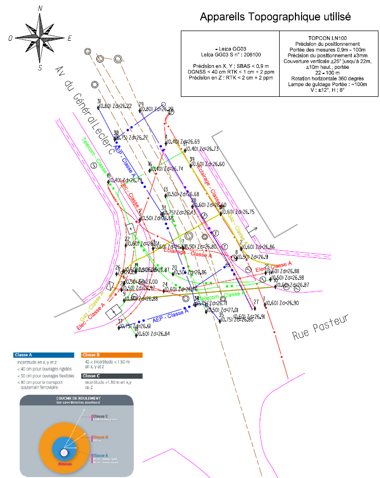 Grâce à des équipements topographiques modernes et à notre expertise terrain, nous assurons une localisation fiable et un relevé géoréférencé indispensable pour vos projets. Ces données garantissent une meilleure gestion des infrastructures, une sécurité accrue sur les chantiers et une conformité réglementaire (classe A selon la norme NF S70-003).