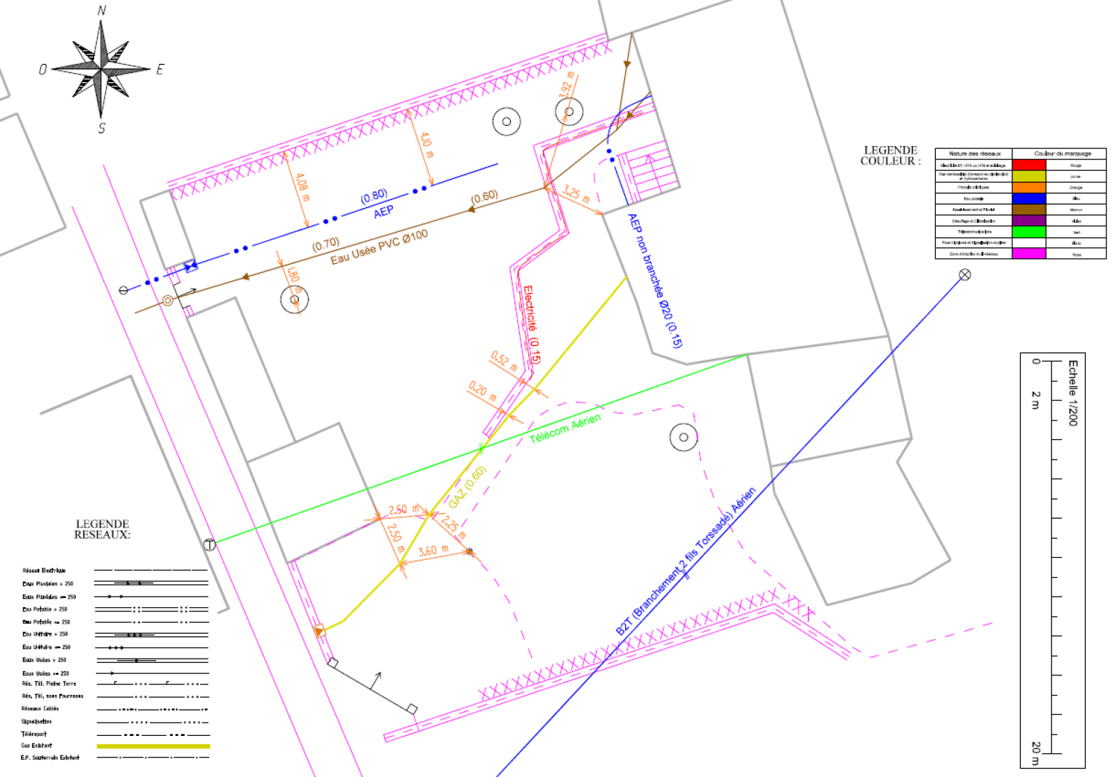 En plus de la détection, nous réalisons le géo-référencement de vos réseaux : chaque canalisation, gaine ou fourreau est relevé et cartographié, ce qui vous garantit une vision claire et durable de vos installations.